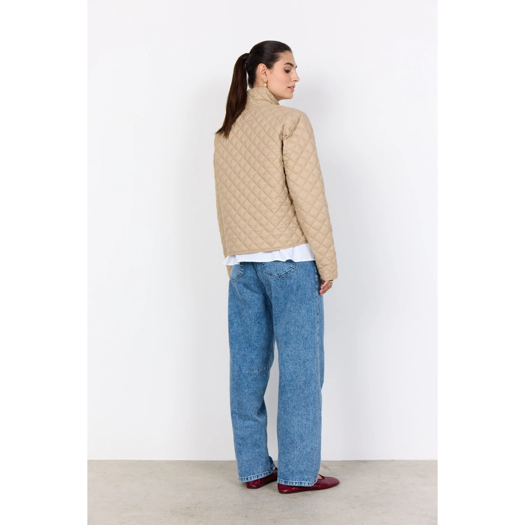 The Benete 2 Jacket is made from 100% Nylon. It features a quilted texture, high collar, and a sleek zipper closure for a modern look. Pair this elegant jacket with tailored trousers or a simple dress for a sophisticated outfit.