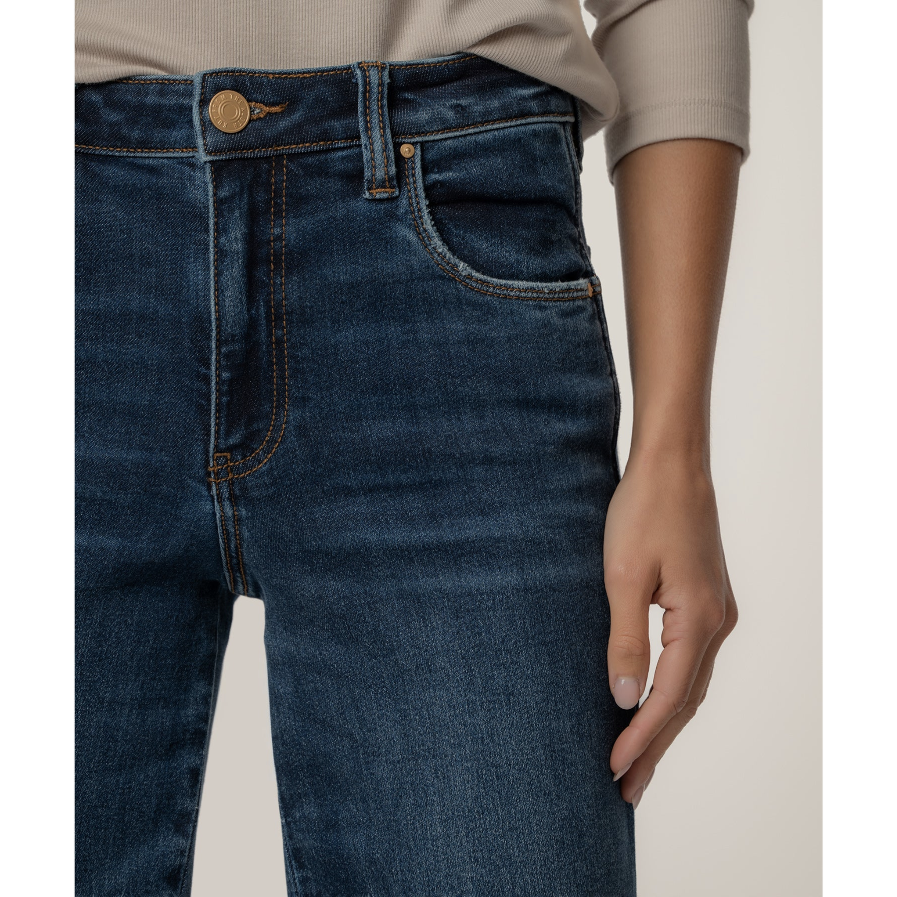 These high-rise straight-leg jeans feature a flattering silhouette and a timeless five-pocket style, finished in a deep, dark wash. Crafted from super-stretch fabric, they deliver lasting comfort while maintaining their shape throughout the day. Effortlessly stylish and easy to wear, they’re a versatile staple for any occasion.